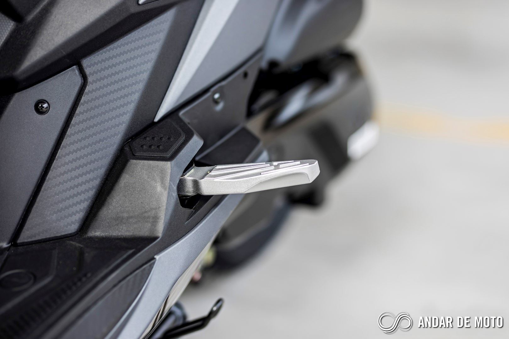 Por um lado permitem assumir uma condução mais agressiva, que apenas é limitada pela reduzida distância livre ao solo do lado esquerdo. Um motociclista, mesmo que não seja muito atrevido, rapidamente vai estar a raspar o descanso lateral da Jet14. No nosso contacto e em companhia de outros jornalistas dos meios, a sinfonia de metal a raspar no asfalto foi uma companhia constante ao longo de todo o percurso que fizemos aos comandos da Jet14.