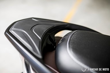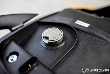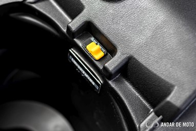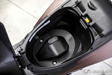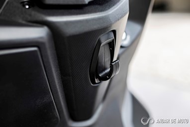 Debaixo do assento existe espaço suficiente para um capacete integral, desde que não tenha saídas de ventilação grandes e pronunciadas. E é também debaixo do assento que encontramos um precioso corte de corrente, que quando ligado impede que os “amigos do alheio” coloquem a Jet14 a trabalhar de forma fácil.