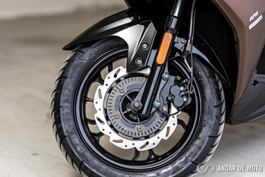 E quanto à travagem com ABS? Bom, se muitos dos que conduziram a anterior Jet14 com travagem combinada se queixaram da pouca sensibilidade dos travões (combinação de disco / tambor), desta feita não terão de se preocupar! A utilização de discos em ambos os eixos conferiu maior “feeling” ao apertar a manete. Travei várias vezes ao máximo que pude, e de todas as vezes o ABS funcionou de forma eficaz. Este sistema no entanto só funciona para evitar o bloqueio da roda da frente, pelo que a roda traseira continuará a bloquear se abusarmos da força que aplicamos na manete esquerda.