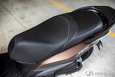 Convém ainda referir que no capítulo da utilização, ou melhor, da facilidade de utilização, a SYM Jet14 merece nota elevada! A plataforma plana garante que temos espaço suficiente para colocar os pés da forma mais confortável possível. O assento baixo, a menos de 800 mm do solo, é uma boa característica para condutores menos experientes e que precisam da confiança extra de saber que conseguem chegar com os pés ao solo em qualquer momento.
