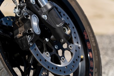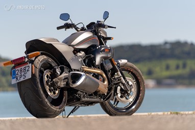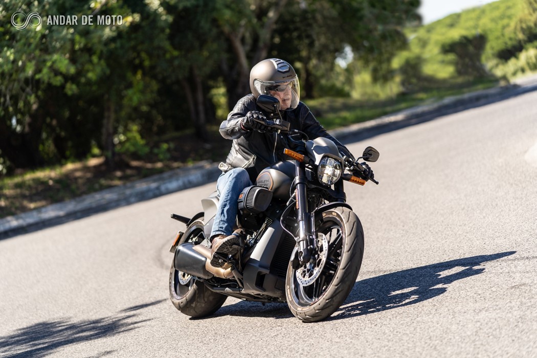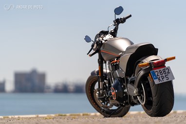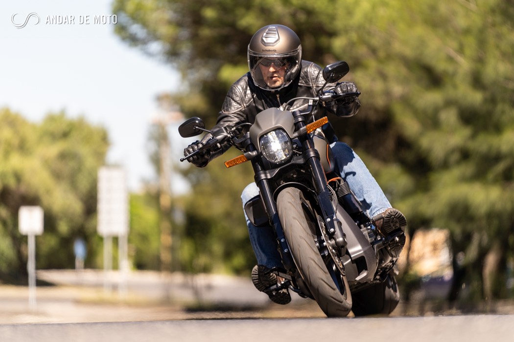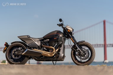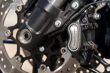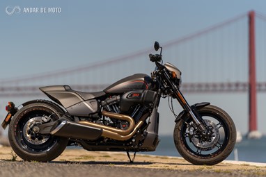 Inspirada nas “Drag Races” americanas, de cuja história a Harley-Davidson faz parte integrante, a FXDR 114 é, no entanto, mais do que uma “drag bike”. Apesar de ter uma inclinação lateral relativamente limitada, a rondar os 33º para ambos os lados, e de o largo pneu traseiro tornar a resposta da direcção mais lenta do que numa moto desportiva, conseguem-se ritmos bastante animados em qualquer estrada de curvas, sensação potenciada pela posição de condução debruçada sobre o depósito, com os pés para a frente, e os braços bem esticados. Tanto mais porque os travões mostram um comportamento muito bom.
