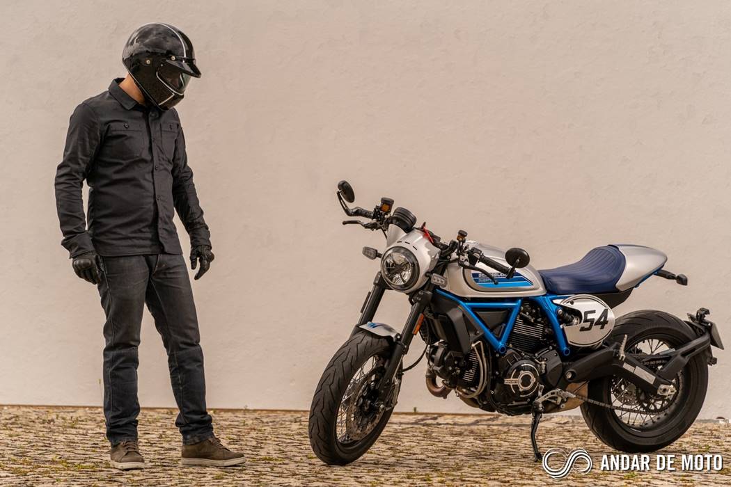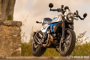 Os novos avanços em alumínio estão bem posicionados para este tipo de motos. Embora coloque o peso nos pulsos do condutor, não é uma posição forçada nem exagerada, e mesmo após um dia inteiro aos comandos da Scrambler Café Racer não senti os meus pulsos massacrados pelo esforço de condução. Toda a ergonomia desta variante Scrambler está bem conseguida, bem melhor do que aquilo que senti há alguns anos quando conduzi a variante Urban Enduro, moto com a qual nunca me consegui sentir totalmente à vontade.