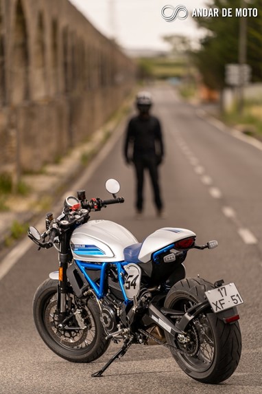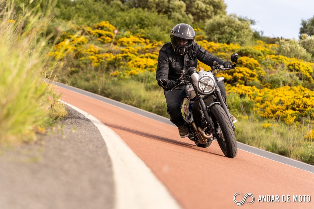 Mas conforme fui conduzindo a Scrambler Café Racer fui-me habituando a esta característica, e um ou dois dias depois de a ter nas minhas mãos já estava habituado à ligeira instabilidade e leveza da frente, e por isso corrigi facilmente colocando um pouco mais de peso na frente, adotando uma posição de condução mais agressiva.