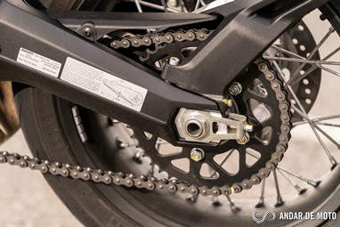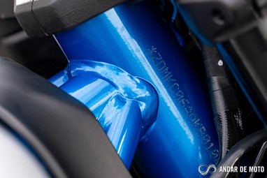 Apesar de não termos qualquer controlo de tração a digerir os excessos de aceleração e perda de aderência, a forma como o acelerador responde aos nossos desejos é perfeita. Quase parece que a nossa mente está ligada diretamente ao motor e à roda traseira. Perfeito!Com o quadro tubular tipo treliça a garantir alguma flexibilidade, a afinação de série das suspensões não é a mais indicada para ritmos fortes. É demasiado suave, sensação ainda mais notória quando conduzimos com passageiro a sobrecarregar o monoamortecedor traseiro que, ao contrário da forquilha Kayaba, permite a regulação da précarga. Com uma condução agressiva é fácil sentir as suspensões a atingirem o seu máximo na compressão, e a extensão da mola pode causar alguma instabilidade na trajetória.