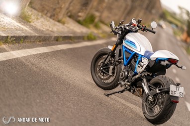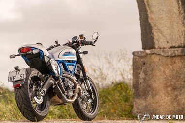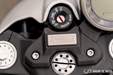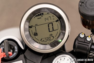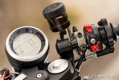 Essa facilidade de utilização é ainda potenciada pelo facto de que o assento é bastante esguio na zona de união com o depósito de combustível que transporta escassos 13,5 litros de gasolina. Este detalhe é importante, pois se conduzirmos a Scrambler Café Racer como deve ser conduzida, ou seja sempre a acelerar de café em café, um depósito cheio não vai durar muito antes de vermos o nível de combustível baixar para a reserva no redesenhado painel de instrumentos LCD, de boa leitura, e apenas com as informações básicas. As visitas ao posto de combustível mais próximo serão frequentes, não tanto pelos consumos, mas mais pelo depósito de combustível ser pequeno.