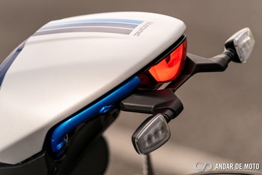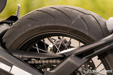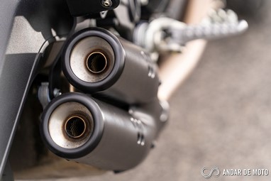 A partir da 4000 rpm os pouco mais de 70 cv deste 803 cc sentem-se fortes e os pulmões cheios de ar. Cada rodar de acelerador, bem doseado, transforma-se em imensa diversão, ao mesmo tempo que o pneu traseiro 180 Pirelli Diablo Rosso III garante uma boa tração à saída das curvas mais lentas.