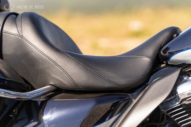 Mas mal se começa a andar a sensação passa a ser outra. A facilidade com que a Ultra Limited responde aos comandos e a confiança que incute são quase inacreditáveis. A ergonomia é muito boa, vai-se perfeitamente “refastelado”, condutor e passageiro, com muito espaço e bem protegidos da intempérie. O seu único problema é manobrar. É exigente em termos de domínio a baixa velocidade ou à mão. Pensar bem as manobras antes de as executar é obrigatório, e revela-se um verdadeiro desafio que, no fim de dominado, é bastante gratificante.