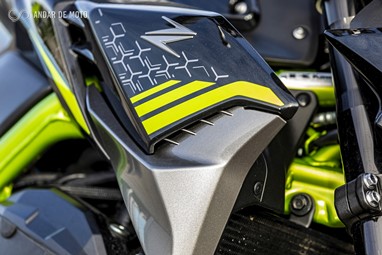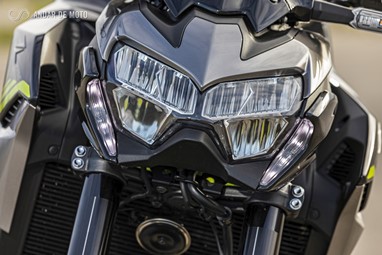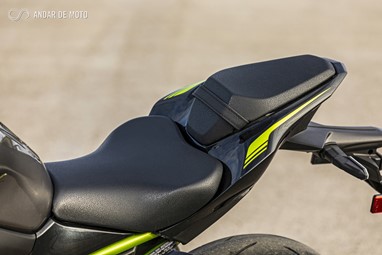 Mas como nem só de motor vive um motociclista, a Kawasaki dotou a nova Z900 com iluminação integralmente em LED, cuja eficácia, infelizmente não pude (ainda) comprovar, e outras pequenas alterações, como o reforço do quadro ao nível do suporte do braço oscilante, que segundo a marca é responsável por uma maior rigidez torcional que reverte a favor de uma resposta mais rápida da direção e da estabilidade em curva.