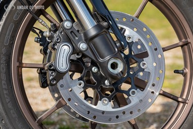 A travagem é bastante boa, ou não fosse integralmente Brembo. No entanto, e apesar de permitir uma relativamente boa dosagem, à boa maneira americana a manete, que não oferece qualquer regulação, exige convicção para que a sua performance se faça sentir.