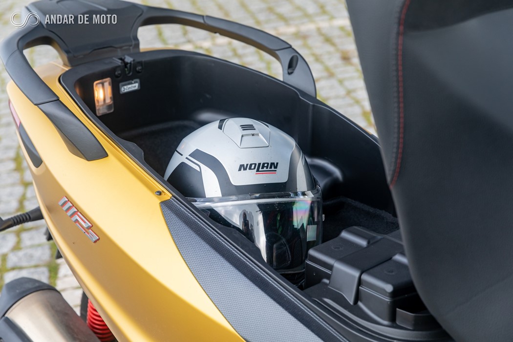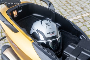 Em termos de arrumação, debaixo do assento existe espaço suficiente para dois capacetes modulares ou uma boa mochila, que conta com alcatifa e iluminação. Para viagem, nada melhor que recorrer a uma top-case, disponível na gama de acessórios opcionais da marca.