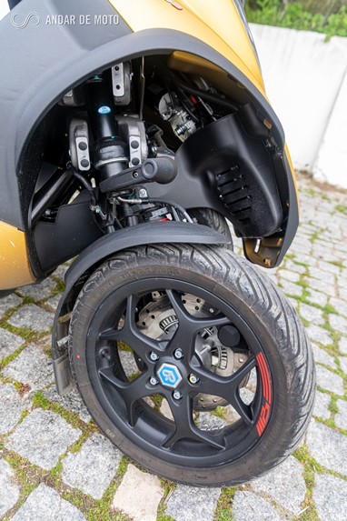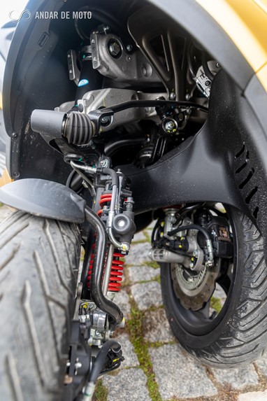 A direcção nota-se mais lenta que a de uma moto normal, mas não cobra dividentos em termos de sensações nem de manobra, e a principal diferença, em termos de condução, resulta numa maior estabilidade e melhor aderência que conferem uma maior confiança em curva, e uma maior capacidade de travagem.