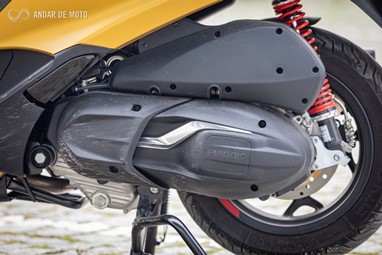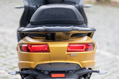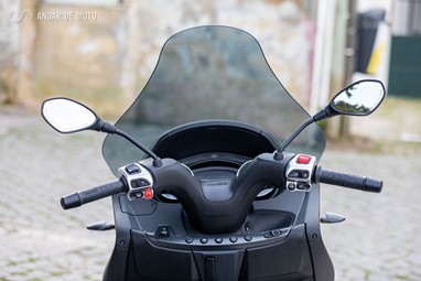 Mas apesar de permitir andamentos rápidos, mesmo com passageiro, esta Piaggio foi concebida para ser prática e confortável, tanto em ambiente urbano como em viagem, em estrada ou até mesmo em auto-estrada.
