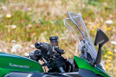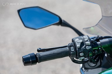 Claro que tem alguns pontos negativos, como por exemplo a ausência de tomada eléctrica no painel (existe como acessório mas não vem instalada de fábrica nem na versão Touring - a sério Kawasaki?). Além disso, apenas os espelhos retrovisores podem causar algum constrangimento no trânsito, mas no entanto asseguram uma visibilidade excepcional.