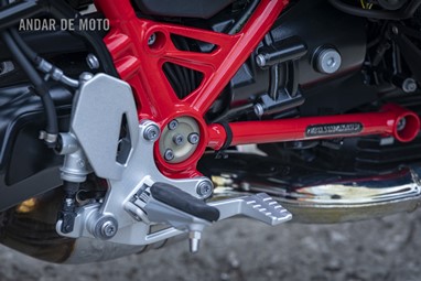 Motor esse que é um dos meus favoritos e que considero impressionante pela sua disponibilidade a qualquer regime, pela sua sonoridade grave e rouca, pela sua vibração que mais parece um pulsar, pela subida de rotação decidida… enfim, um dos que me satisfaz completamente! Sobretudo porque a caixa de seis velocidades, assistida por uma embraiagem a seco, de disco simples e acionamento hidráulico, é extremamente precisa e rápida.