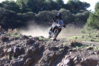 Da parte da tarde, assistimos a uma demonstração do multi campeão de enduro (e embaixador Triumph) Ivan Cervantes, que num percurso com saltos impensáveis de realizar por um comum mortal, transformou a Rally Pro numa moto de enduro. A sensação de pequenez das nossas habilidades quando observamos tal domínio sobre a máquina, é algo dificilmente se consegue explicar por palavras. Ver uma moto com mais de 200 Kg a travar forte e em ângulo, sair em potência para depois atacar um duplo salto, é uma imagem impactante. Sobretudo quando o veículo em questão é igual ao que estamos a tentar ser “bons a nível do normal” há um par de horas, então pintamos o cenário de um cor-de-rosa frustrante.