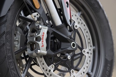 Um novo módulo electrónico da Continental comanda a travagem (onde impera o sistema da Brembo, com as suas Stylema), e tal como no controlo de tracção, o ângulo de inclinação entra na equação como variável.