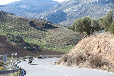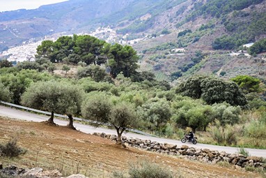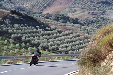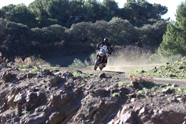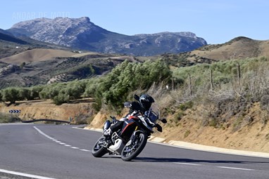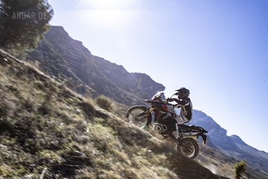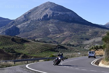 Manhã fria nos arredores da Sierra de las Nieves, mas um glorioso céu azul dava-nos a sensação de que este iria ser um óptimo dia para andar de moto. A divisão em pequenos grupos de jornalistas facilitavam a fluidez de ritmo, e a presença da organização inglesa antecipava a mestria de uma orquestra bem oleada. As sensações nos primeiros metros aos comandos da Tiger 900 Rally Pro não podiam ser melhores, os detalhes das melhorias no triângulo de condução (posição das mãos, quadril e pés) sobressaiam de forma natural.