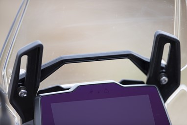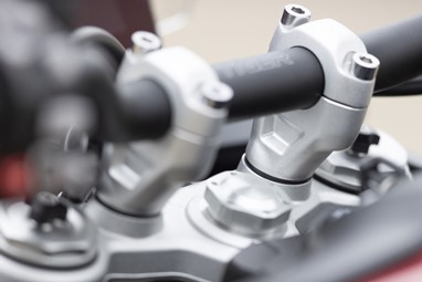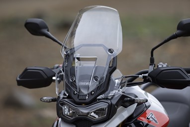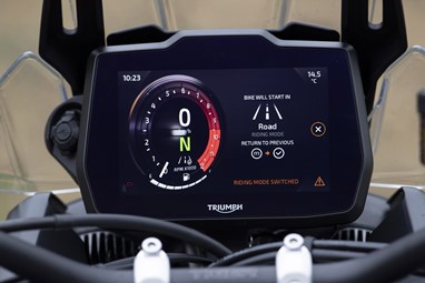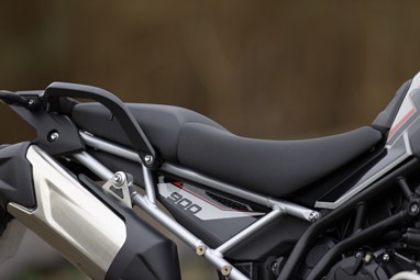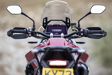 No campo da ergonomia, temos um novo posicionamento do guiador na versão Rally (15 mm mais próximo do condutor), assim como uma fixação assistida por pequenos sinoblocos de borracha, com o intuito de minimizar vibrações indesejáveis. O assento foi redesenhado, encontrando-se agora mais espaçoso e com uma espuma mais densa (regulável em 20 mm de altura, existindo ainda um assento mais baixo disponível no vasto catálogo de acessórios). O display digital transformou-se num TFT de 7” exactamente igual ao da Tiger 1200, com semelhante interface e design cativante. Permanece o comutador-cursor para navegação no sistema, assim como o acesso directo aos diferentes mapas de condução (Rain, Road, Sport, Rider e Off-Road nas versões GT e o extra Off-Road Pro nas versões Rally Pro).