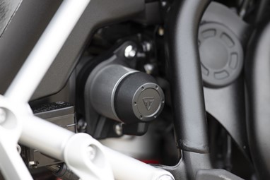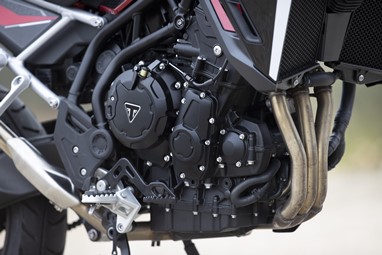Quando um modelo é bem nascido, todo o cuidado é pouco quando queremos aprimorar-lhes as valências. A Triumph foi criteriosa nesta evolução. O tricilíndrico com cambota desfasada (tecnologia T-Plane), viu as suas cotas internas inalteradas, porém grande parte do esforço de remodelação deve-se a alterações no modo como “respira”. Corpos de admissão maiores, abertura de válvulas com maior extensão (e consequente remapeamento da injecção, aumentando a taxa de compressão e eficiência da combustão), e uma linha de escape redesenhada, ajudam este triatleta a aumentar a sua performance. Os números em questão remetem-nos para um aumento de 13 cv e 3 Nm (conta agora com 108 cv @ 9500 rpm e 90 Nm @ 6850 rpm), notando-se uma diferença significativa nas curvas de potência quando são sobrepostas ao modelo anterior.