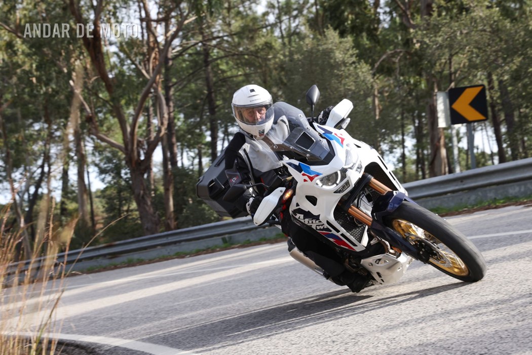 Logo nas primeiras curvas deu para perceber a maior agilidade do conjunto, com a frente mais incisiva, a transmitir muito mais confiança e a proporcionar uma maior potência de travagem e um afundamento praticamente imperceptível. A estabilidade em curva passou a ser muito maior, mesmo em ritmos elevados, em travagens prolongadas praticamente até ao apex da curva ou acelerações vigorosas logo de seguida, isto graças também à suspensão eletrónica Showa EERA que agora é equipamento de série.