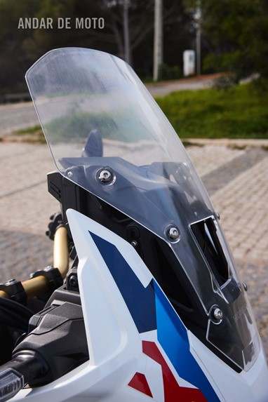 As grandes proteções de punhos são equipamento de série, e a sua qualidade de construção está em linha com a dos demais componentes da moto, que no geral se apresenta sólida, sem ruídos nem vibrações consideráveis.