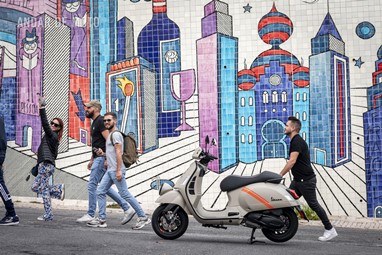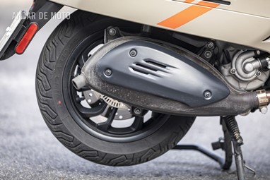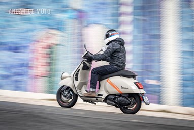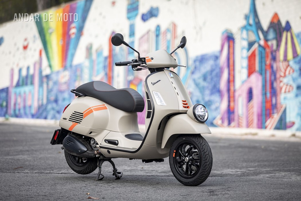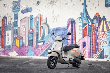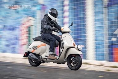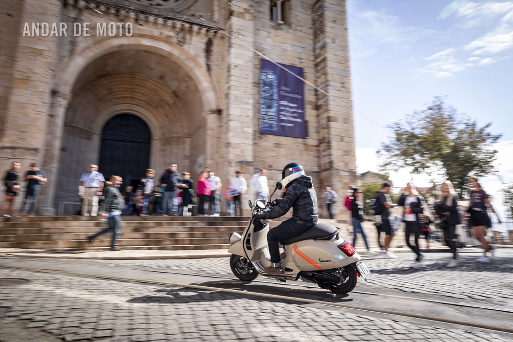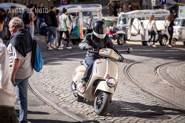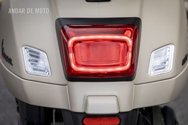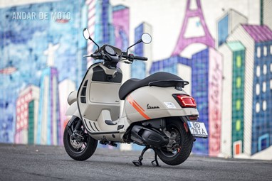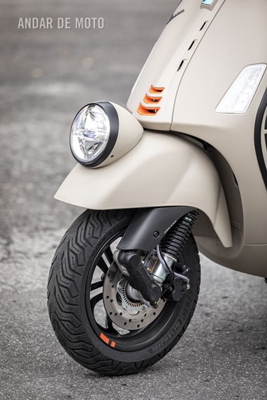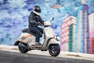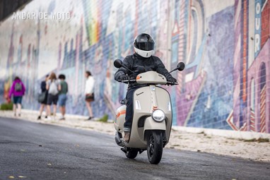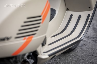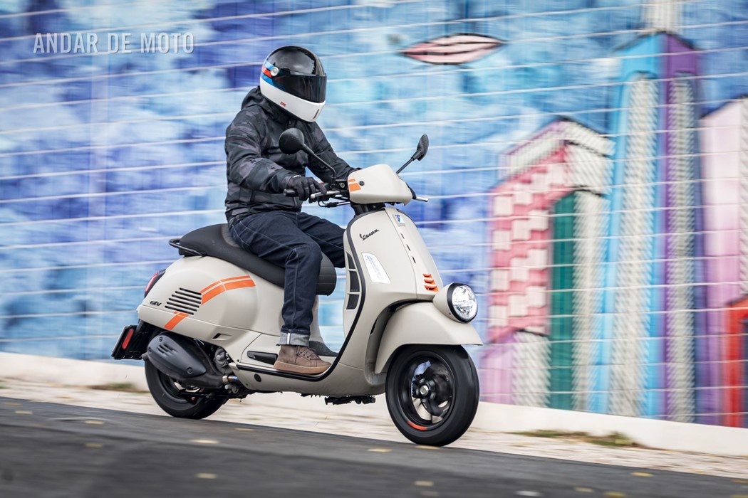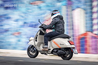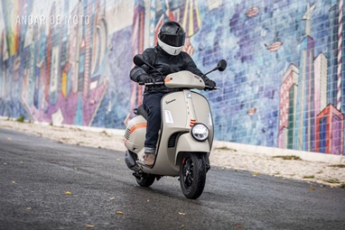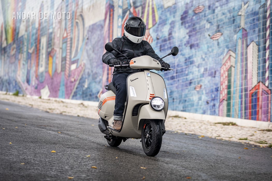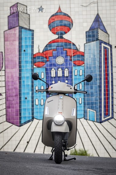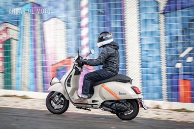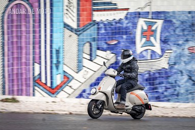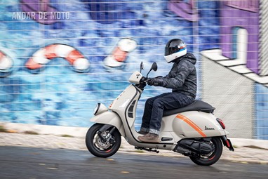A leveza do conjunto e a curta distância entre eixos, ajudam nas manobras mais limitadas, tendo em conta que a altura ao solo não é das mais acessíveis, e o seu tamanho acaba por se revelar maior do que aparenta. Afinal de contas, estamos na presença de uma “vespone”, uma máquina pronta para tiradas maiores.