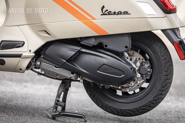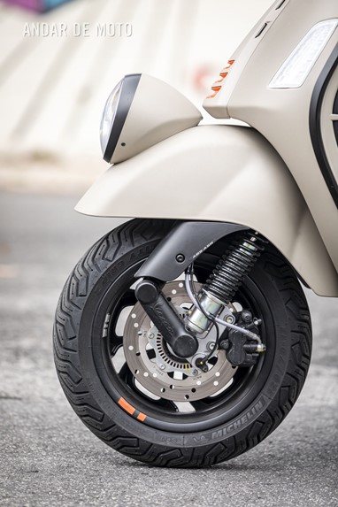 A sua progressividade torna-nos afoitos no trânsito e sentimos que podemos contar sempre com a sua disponibilidade (com 278 cc debita 23,8 cv às 8250 rpm e 26 Nm às 5250 rpm) para nos safarmos de situações complicadas. Embora consigamos facilmente atingir - e superar - as velocidades limite das grandes vias, o seu limite de rotação está castrado em relação ao da GTS por cerca de 10 km/h (a mais desportiva das Vespas consegue passar os 140 km/h).