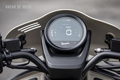 Com a chave no bolso graças ao sistema keyless, damos vida ao elegante LCD redondo de contraste negativo, de design simples e bem estruturado (velocidades máxima e média, consumo instantâneo e médio, autonomia e carga da bateria), e a possibilidade de podermos emparelhar o nosso telemóvel (graças ao opcional sistema MIA) é uma realidade indicativa da sua modernidade.