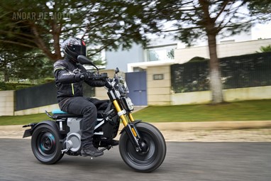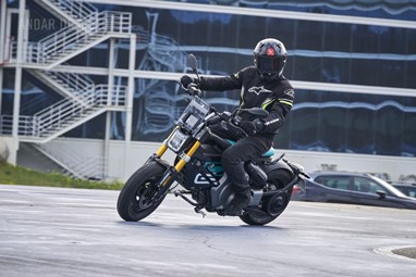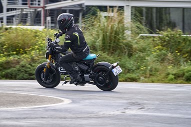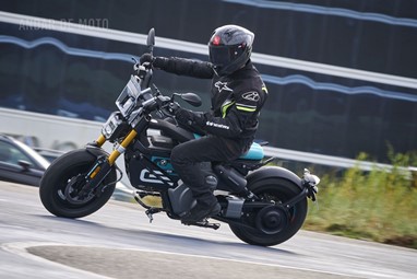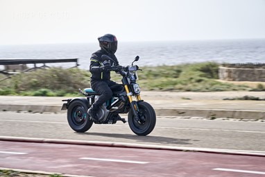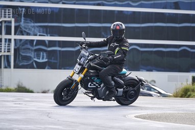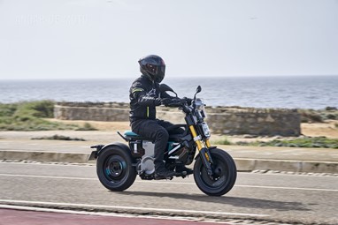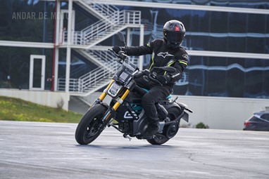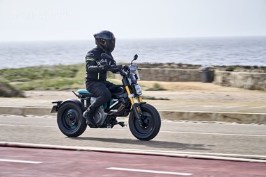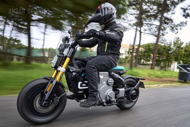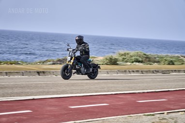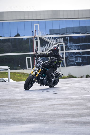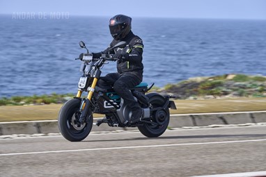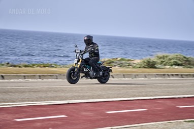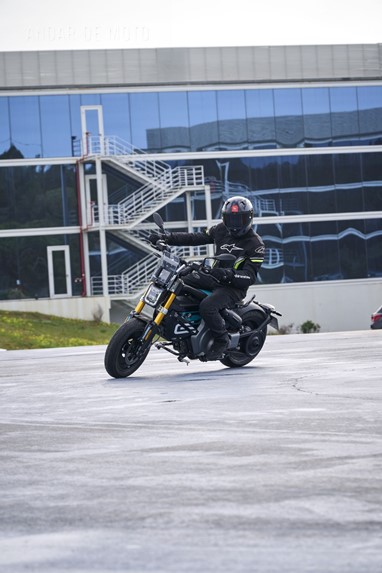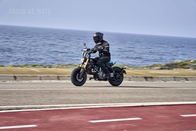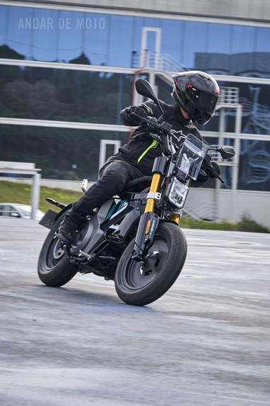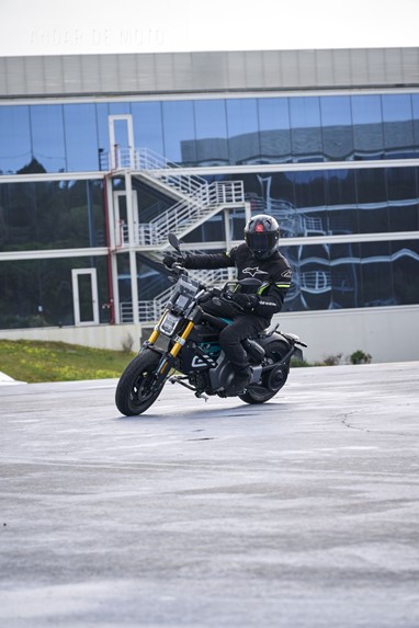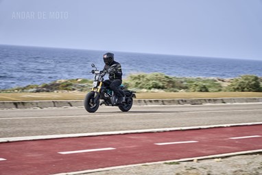Conseguimos comprovar a sua velocidade máxima de 95 km/h (até mais), alcançada de maneira progressiva mas eletrizante, muito devido ao seu baixo peso de 132 kg, no entanto somos penalizados pela pouca proteção aerodinâmica, desnecessária diga-se em abono da verdade, considerando as velocidades permitidas nos meios urbanos carregados de radares.