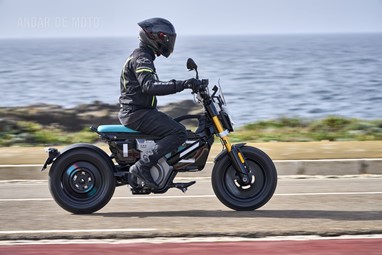 Com uma carga de 100%, as duas baterias oferecem uma autonomia de 90 quilómetros, mais coisa menos coisa, sem ser em modo caracol. Se formos alternando entre os modos Flow, Surf e o opcional Flash, o travão de motor muda a sua intensidade regenerando mais, ou menos, energia, ou até mesmo nenhuma no modo dedicado.