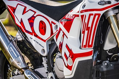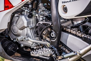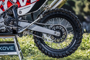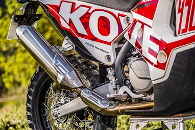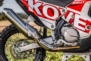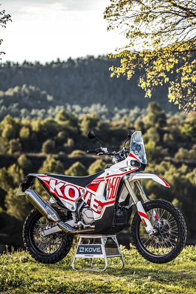 Para o mercado português a Kove 450 Rally de base estará apenas disponível com plásticos robustos na cor branca, decorados com autocolantes a vermelho. Mas, para os viciados em adrenalina, a Kove irá disponibilizar dois kits que aproximam ainda mais este modelo de uma pura endurista. O mais acessível (1000€) conta com um escape mais “livre”, filtro de ar em esponja e uma centralina que confere à 450 Rally 56 cv de potência.