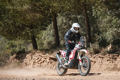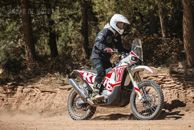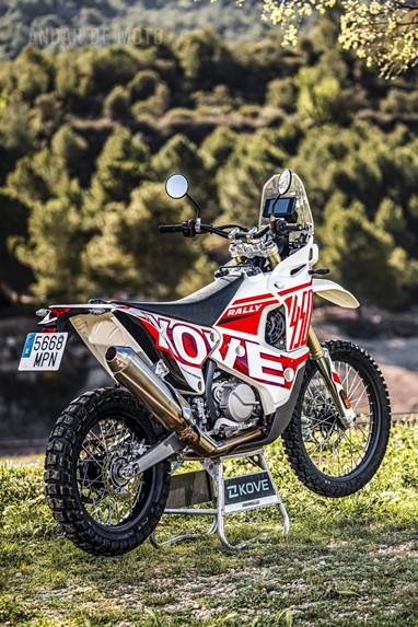 Estaticamente e dinamicamente, a Kove 450 Rally assemelha-se a uma moto de enduro, com um assento comprido e ligeiramente estreito, que se destaca pela sua comodidade e altura ao solo, de 960 mm, um problema que pode ser mitigado com o kit de rebaixamento para 910 mm, que mantém a mesma distância livre ao solo de 310 mm. Em situações extremas, podemos contar com a resistente proteção do cárter e depósitos de combustível em carbono.