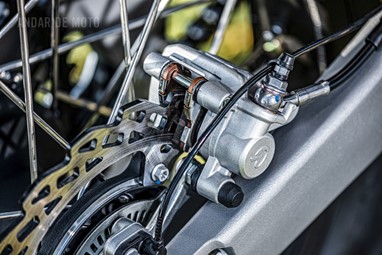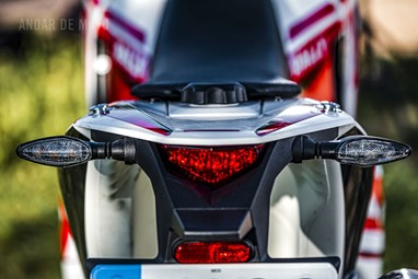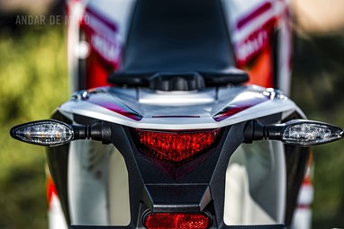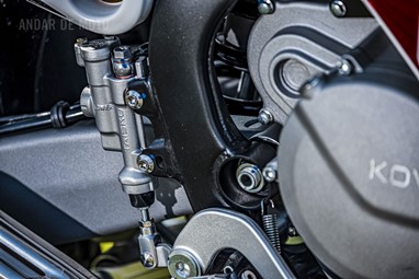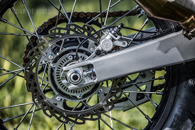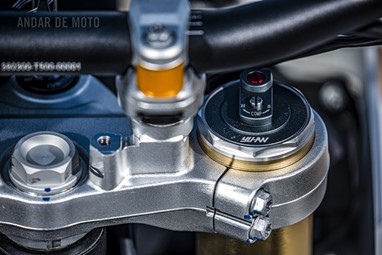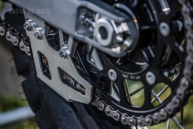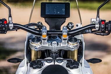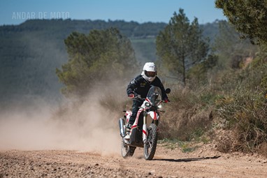 No percurso do Les Comes, com 3 opções (curto, médio e longo), as suspensões totalmente ajustáveis eram colocadas à prova na absorção dos impactos sofridos no piso irregular, e que somente precisaram de um pequeno ajuste para ficar ao nosso gosto. Ainda assim, a afinação de fábrica não comprometeu o desempenho e as suspensões comportaram-se de maneira firme e previsível sem deixar espaço para receios nas diferentes manobras de aceleração, salto e travagem.