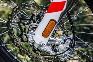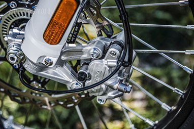 Esta última, realizada por um pinça de dois pistões e disco único na dianteira e pinça simples na traseira, permitem uma fácil e rigorosa dosagem, muito conveniente para o fora de estrada, pondo facilmente os pneus CST, de 18 e 21 polegadas, a evidenciarem os seus dotes de aderência num piso de terra muito seca e dura. Possui ABS com a particularidade de desligar facilmente ou apenas na roda traseira ou ambas, por meio do comutador direto e através do painel de instrumentos, este em TFT de tamanho apreciável e com um bom interface humano.