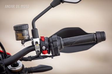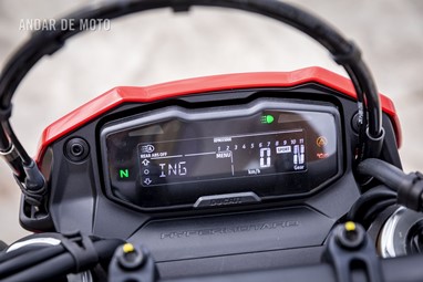 A Ducati Hypermotard 698 Mono (à semelhança da restante família) é uma moto sem grandes compromissos, servindo-se da sua simplicidade camuflada para nos colocar em sentido. No meio da habitual funcionalidade de todos comutadores, o ambiente geral é de qualidade, mesmo que o ecrã digital nos omita o nível de combustível e a respetiva autonomia. A ideia percebe-se, quando a luz da reserva se acende e a brincadeira acaba. Ponto! Por outro lado, a interacção com a miríade de ajustes electrónicos é bastante directa (sendo que a maior parte deles conseguimos parametrizar em andamento). Com a ajuda de uma IMU de 6 eixos temos cornering ABS, Controlo de tracção e Anti-Wheelie, todos eles com um gradiente que nos permite oscilar entre a sanidade e a loucura.