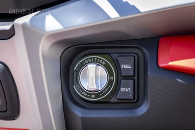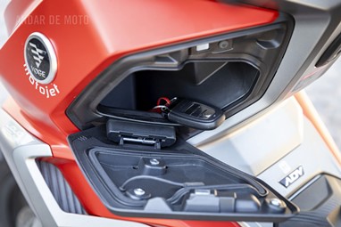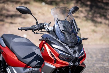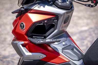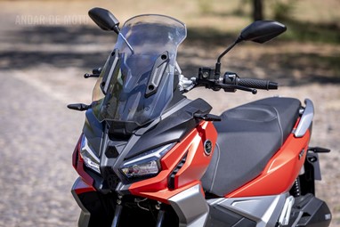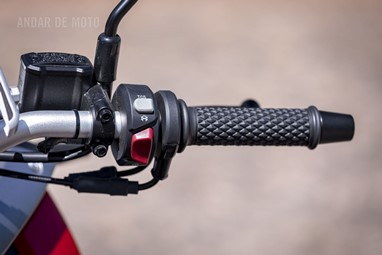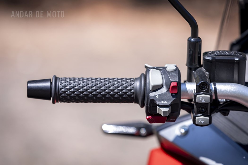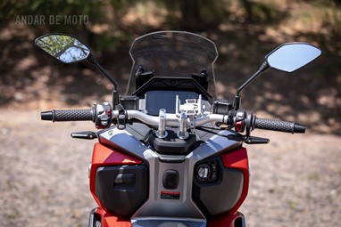 Além disso, o guiador é em tubo de alumínio e oferece ajuste ergonómico. Os comandos foram atualizados, incluindo os novos botões para regular o pára-brisas, ajustar a hora e as funções do painel do painel de instrumentos e até tirar fotos com a câmara.