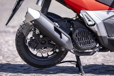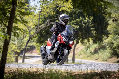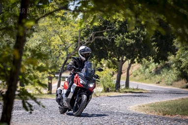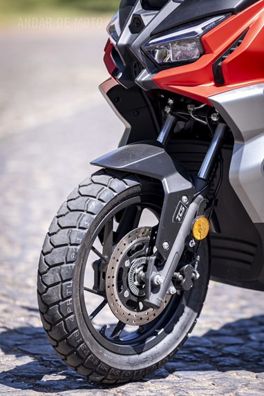 Os travões, com discos de 240 e 220 mm, oferecem boa potência e dosagem, complementados por ABS de dois canais, que põem à prova a aderência dos pneus mistos, os quais demonstraram bom desempenho em asfalto e proporcionam uma ligeira aderência em terrenos soltos.