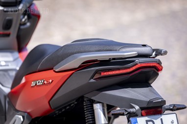 A secção traseira da Voge SR1 ADV apresenta uma nova assinatura luminosa LED, e o depósito de combustível foi aumentado para 9 litros, melhorando a autonomia. Sob o assento, mantém-se o espaço para um capacete jet e outros pertences, e na frente há uma tampa de acesso à bateria. Adicionalmente, há um pequeno espaço de arrumação no lado esquerdo e um gancho retrátil para objetos na parte de dentro da carenagem frontal.
