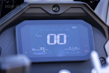 O novo painel de instrumentos LCD a cores, agora com conectividade Bluetooth, mostra chamadas e mensagens recebidas e oferece navegação passo a passo através da app Voge Global. Na SR1 ADV este sistema também inclui novos avisos, como o de proximidade de uma estação de serviço ou de uma portagem.