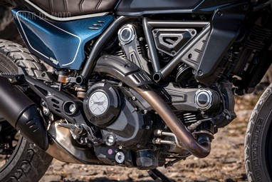 O motor das Ducati Scrambler tem uma configuração em V a 90º, arrefecido a ar, baseado no motor da antiga Ducati Monster 796. Com uma potência de 72 cv às 8250 rpm e um binário de 66,2 Nm às 5700 rpm, esta unidade motriz não se destaca pela potência, mas pela sua fiabilidade e charme.