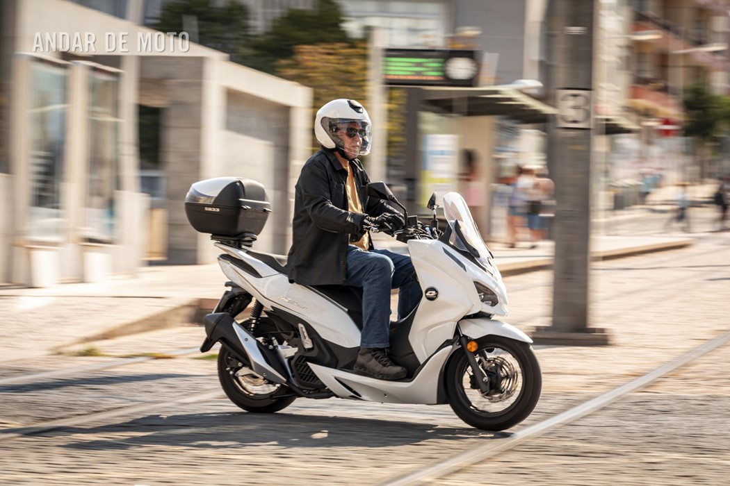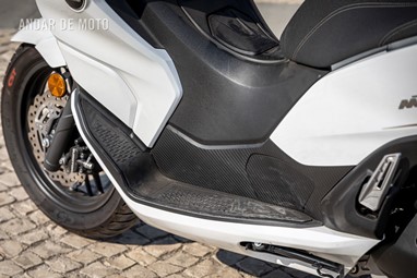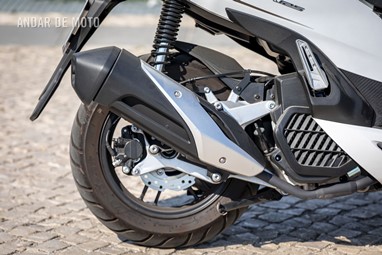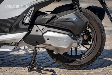 Na travagem, além dos apelativos discos em pétala, (240mm na frente e 225mm na traseira), as pinças são assistidas por um ABS de duplo canal, e na suspensão, destacam-se os amortecedores com regulação de pré-carga. Até os pneus, da marca chinesa CST, com medidas 110/80-14 (frente) e 130/70-13 (atrás), não desiludem, mostrando-se ao nível da restante ciclística.