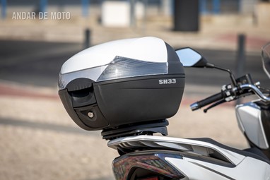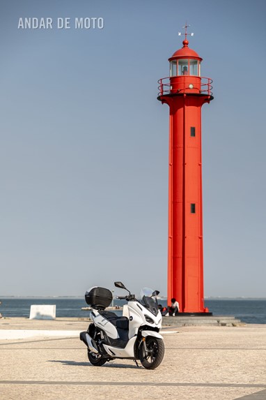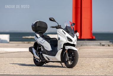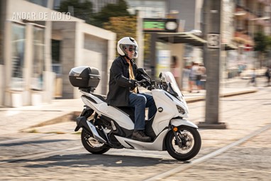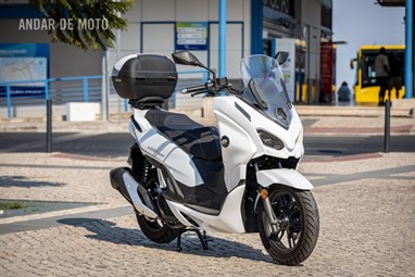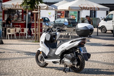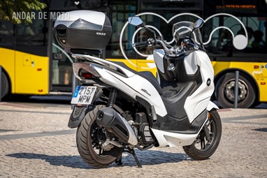 Um painel de instrumentos TFT de 5'' a cores com conectividade a um smartphone, iluminação Full LED, monitorização da pressão dos pneus, retroiluminação dos botões de comando, tomadas USB acessíveis, manetes reguláveis, Top case de série e seis anos de garantia, são mais argumentos que melhoram sobremaneira a relação qualidade/preço desta scooter.