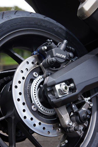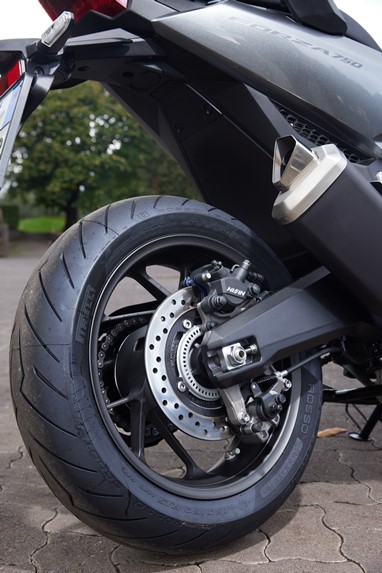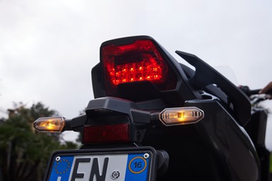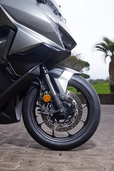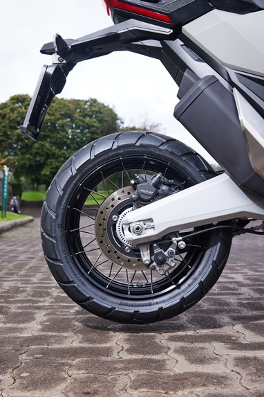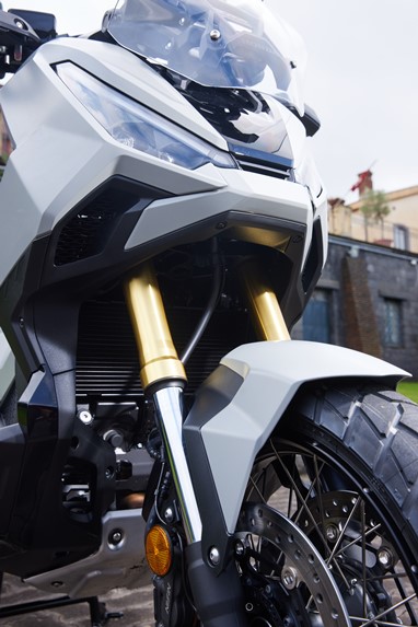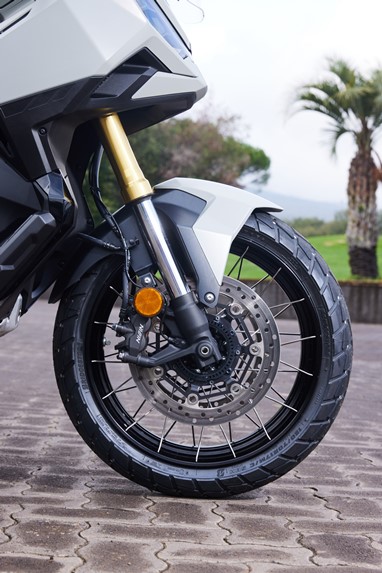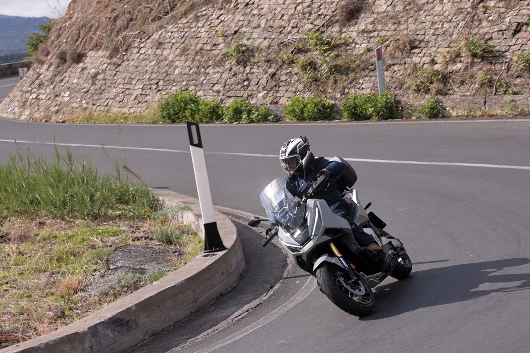 A confiança que a jante dianteira de 17” nos oferece, aliada a umas suspensões (de menor curso qua as da X-ADV) e travagem (com discos de maior dimensão, de 310 mm de diâmetro) com pendor desportivo, transformam-na numa das máquinas mais divertidas de conduzir na malha urbana (e não só!).