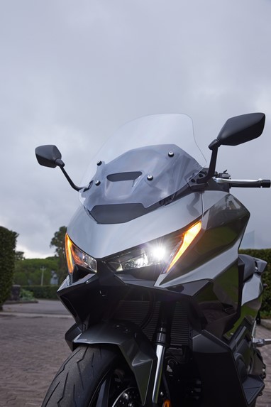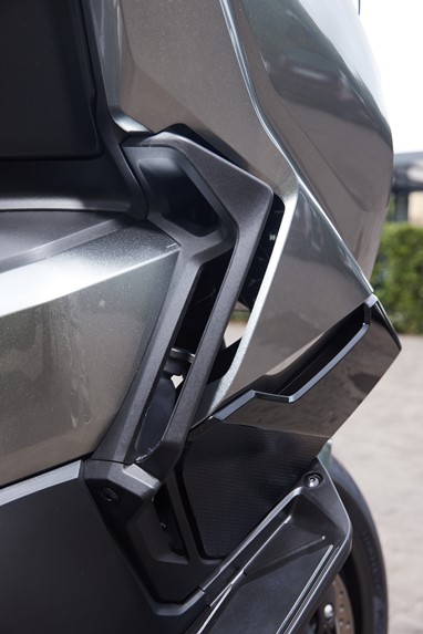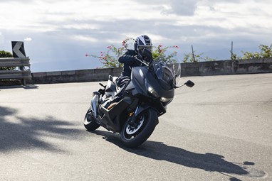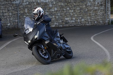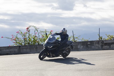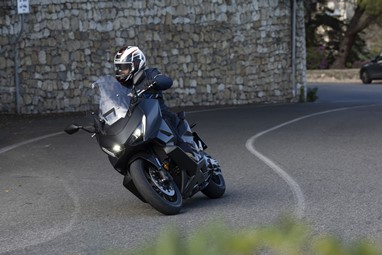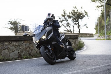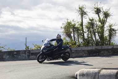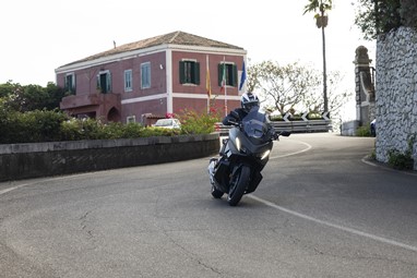 O centro de gravidade sente-se também mais baixo, favorecendo a agilidade, e o bicilíndrico com a caixa DCT revela-nos uma experiência de condução única para uma maxi-scooter, sempre disponível para mostrar serviço. Diríamos até que muito poucas motos “de verdade” a conseguiriam acompanhar num contexto citadino.