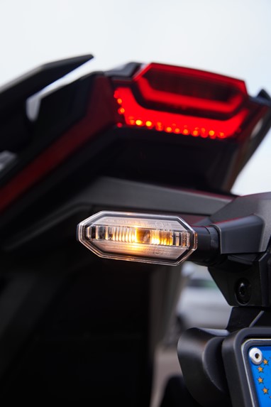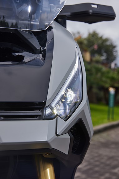 A X-Adv nunca terá uma presença discreta, e nós só podemos agradecer a fantástica cor amarela que celebra e destaca a sua diferença. Os indicadores de mudança de direcção fazem agora parte dos DRL (Leds de presença diurna, duas vezes mais brilhantes que no modelo anterior), limpando a carenagem frontal de quaisquer apêndices luminosos.