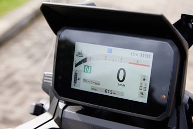 O ecrã TFT colorido tem um novo layout, privilegiando a visibilidade e a facilidade de interação, assim como também surge um novo comutador de tipo “joystick”, entre os demais que agora são retroiluminados, tornando mais simples a imersão no sistema. É desta forma que, com o polegar esquerdo podemos modelar toda a parafernália electrónica (desde os punhos aquecidos até ao acesso ao Honda Road Sync que nos permite ouvir música ou ter direcções simplificadas “turn by turn”).
