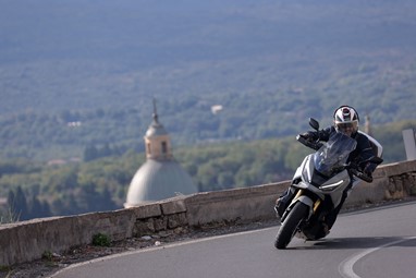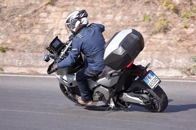 Muito sinceramente, para nós bastava uma estrada de curvas para ficarmos convencidos, porque toda a envolvência dinâmica desta maxi-scooter é um verdadeiro assalto aos sentidos. Até o som da indução de ar é mais pronunciado do que na irmã mais aventureira!