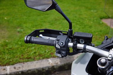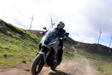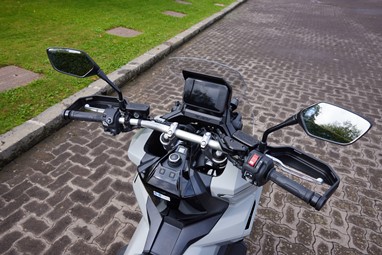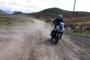 Em estrada aberta, o conforto de rolamento é bastante aprazível, muito graças à sua protecção aerodinâmica (se bem que gostaríamos de umas protecções de punho com dimensões reais, não tendo de pagar um extra pelas suas “extensões”), e nunca questionamos o assento ou a posição de condução (estamos de braços bem abertos, com a alavancagem típica de uma trail).