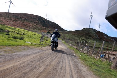 No pequeno percurso fora de estrada fizemos valer o uso dos poisa pés específicos que nos colocam numa posição quase ideal para podermos controlar a máquina nos terrenos mais escorregadios.