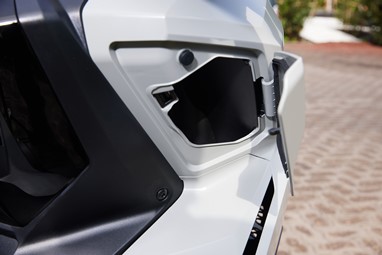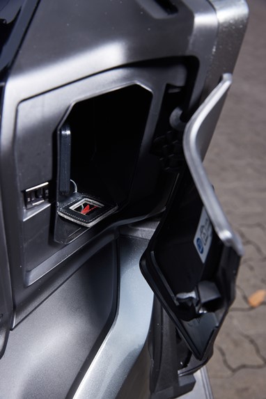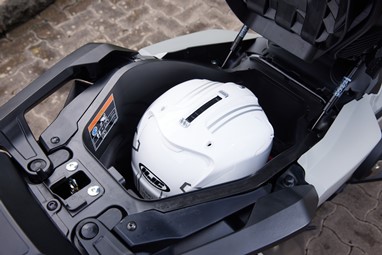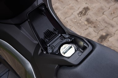 A vantagem de termos um espaço debaixo do assento capaz de albergar um capacete integral (ou até mesmo um de aventura, com pála pequena) nunca pode ser desvalorizada, é um extra único de uma scooter com motor de gente grande.